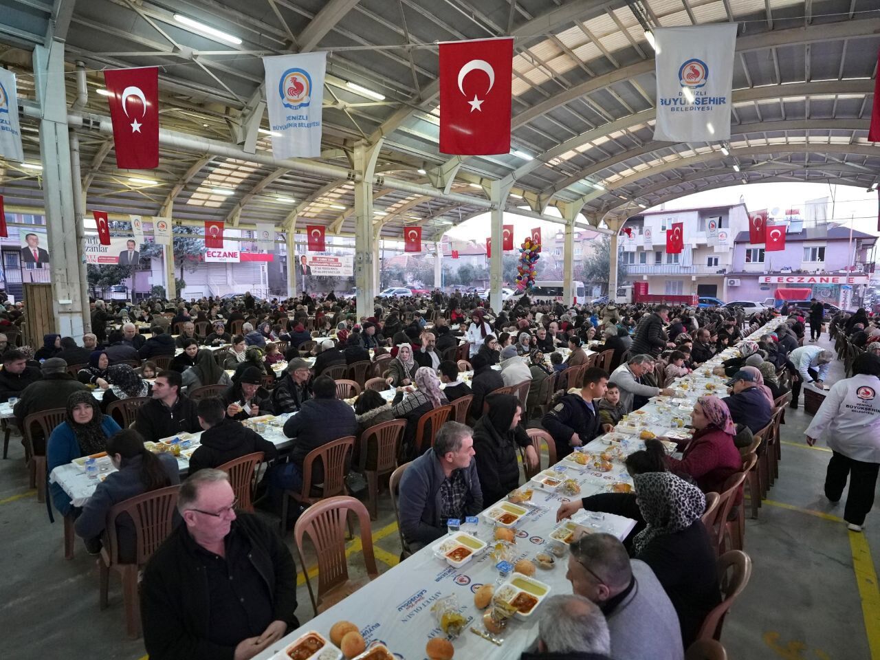 Denizli Büyükşehir Belediyesi Ramazan ayının birlikteliğini kurduğu iftar sofralarıyla büyütüyor. Her gün farklı bir mahalle ve farklı bir ilçede hayırseverlerin katkılarıyla gerçekleştirilen iftar sofraları şehir merkezinde Karşıyaka Mahallesi’nde binlerce kişinin katılımıyla gerçekleştirildi. Hayırseverler Selçuk Önal ve Ahmet Önal’ın katkılarıyla yapılan iftar programına, Denizli Milletvekili Şeref Arpacı, Denizli Büyükşehir Belediyesi Başkan Vekili Ali Marım, Pamukkale Belediye Başkanı Ali Rıza Ertemur, CHP Pamukkale İlçe Başkanı Uğur Coşkun, Büyükşehir Belediyesi Meclis Üyeleri, hayırsever Önal Ailesi, kent protokolü ve binlerce vatandaş katıldı. Ezanın okunmasının ardından Karşıyaka Mahallesi sakinleri hep birlikte, dualar eşliğinde oruçlarını açtı.